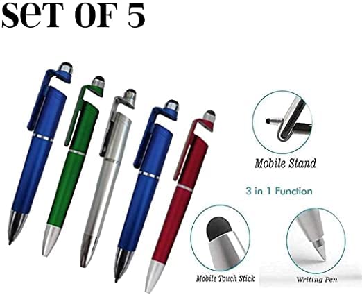 3 in 1 penNOCXTUN Aluminium PEN-78 Pack of 5 Universal 3 in 1 Capacitive Screen Stylus Touch Pen with Mobile Stand Holder, Writing Pen (Compatible for Android Touch Screen Smart Phones and Tablets