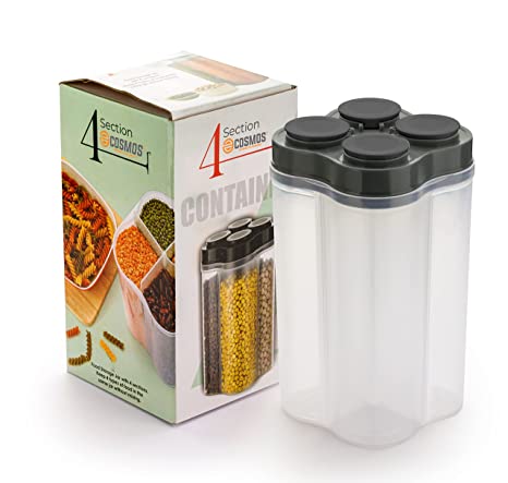 4 Section Space Saver Air Tight, PET Transparent Plastic Container for Grocery, Flour, Snacks, Cereal, Grain Kitchen Storage Container (2500 ML, 4 in 1, Air Tight, Multicolor, 1 PCS)