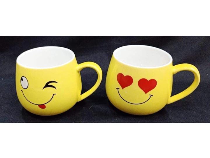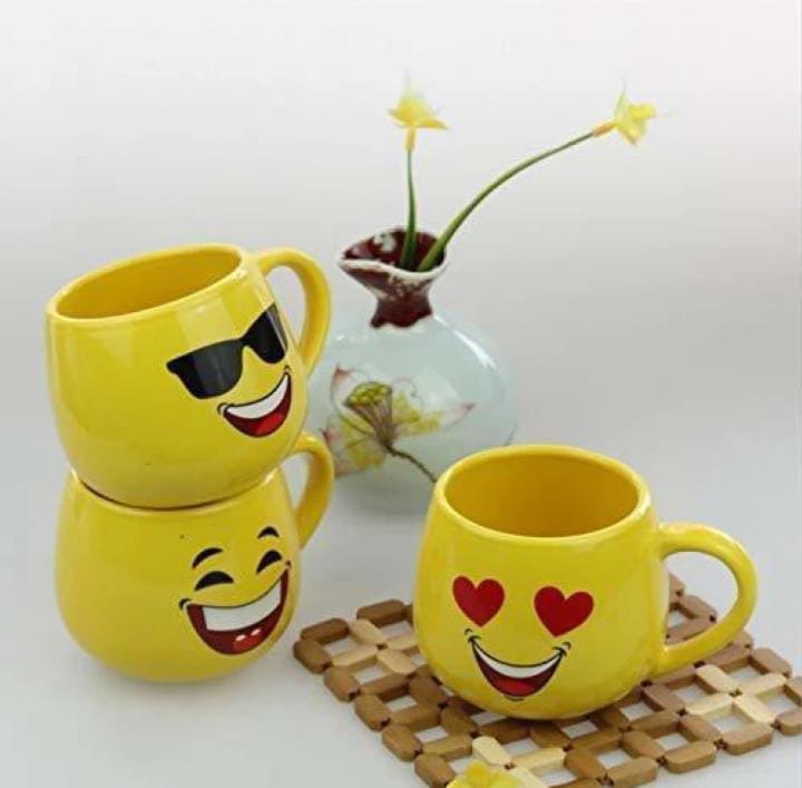 Lucky Smiley Emoji Face Tea Cup, Coffee Cup, Mug, Milk Mug for All Yellow Colour Set of 6 350ml