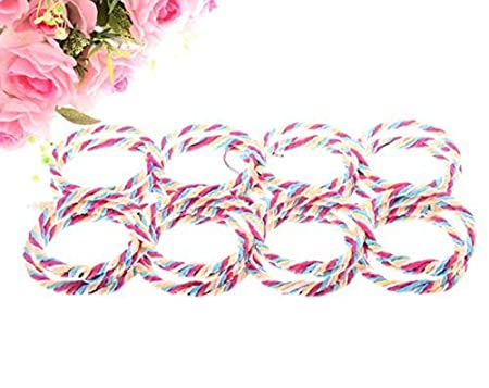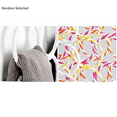 Hanger material is made of steel with rattan weaved yarn in continuous loops this closet hanger has pastel rose pink, white and green colored yarn wrap this scarf hanger