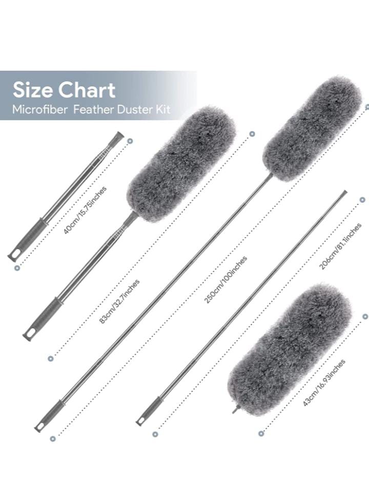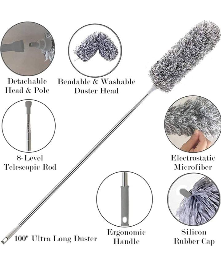 The microfiber duster with a extra long pole which can reach 80 inches when fully extended.