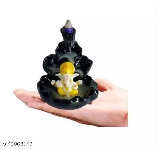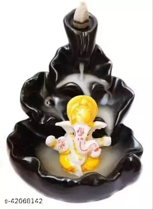 Creation Smoke backflow Fountain Incense Holder Ganesha Idols Mukut Showpiece Figurine with Free 10 Backflow Incense Sticks Cones