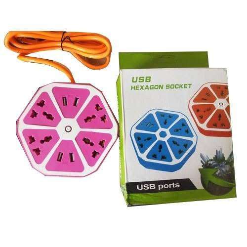 Goldtech Hexagon Shape Sky Pink Color Socket Extension Board with 4 USB 2.0Amp Charging Points