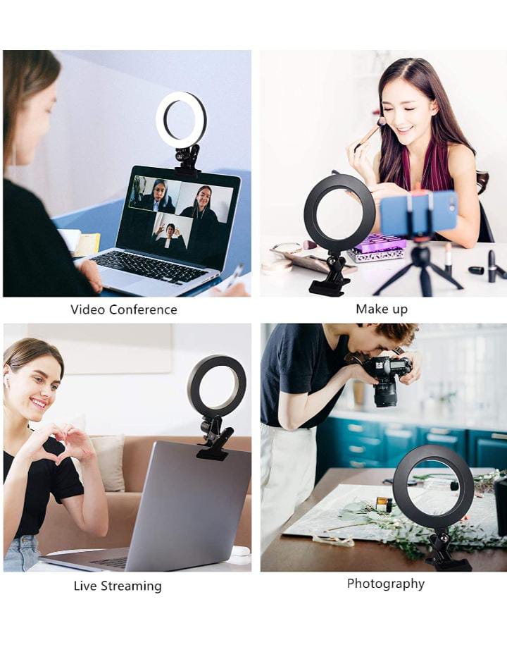 DEVICE OF URBAN INFOTECH 6″ LED Video Conferencing Ring Light Clip On Laptop Selfie Ring with 3 Colour Mode 10 Brightness Level for Online Classes Zoom Meetings Interview Live Streaming