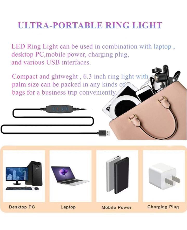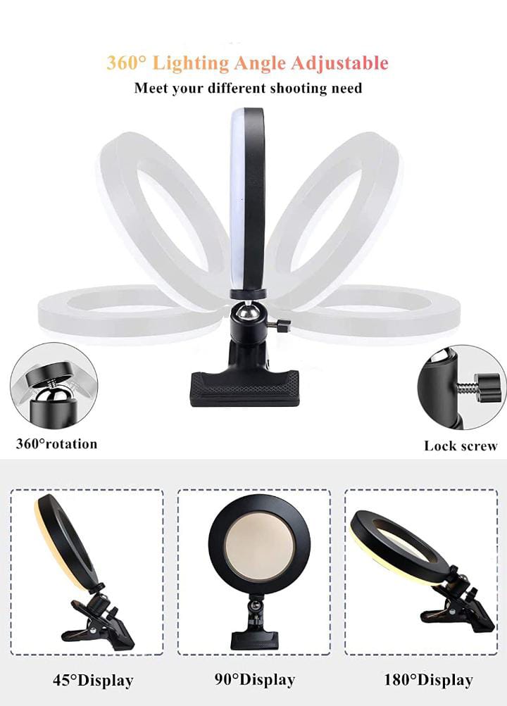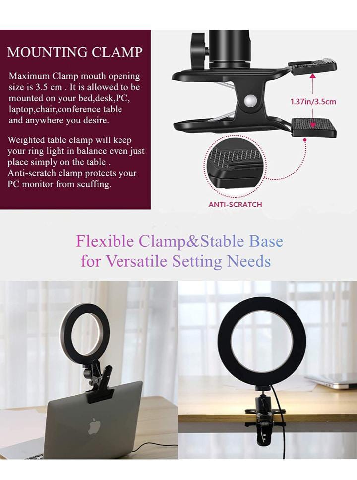Stability and durability: The ring light is equipped with a scratch-resistant mounting clip. The clip is made of metal, strong and durable, and will not deform. The weighted metal clip keeps your LED ring light balanced, even if you just put it on the table. It can be installed on your desk, laptop, bed, conference table, even PC monitor, and wherever you want.