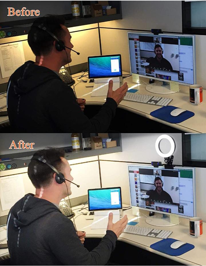 Multiple application scenarios: This video conference lighting kit is designed for multiple tasks that require additional light sources. You can use this light for remote video conferencing, online teaching/learning, video chat, live broadcast, YouTube video shooting, TikTok, selfie, reading, makeup, handwork, night light, etc. The kit is small in size, easy to store or carry out.