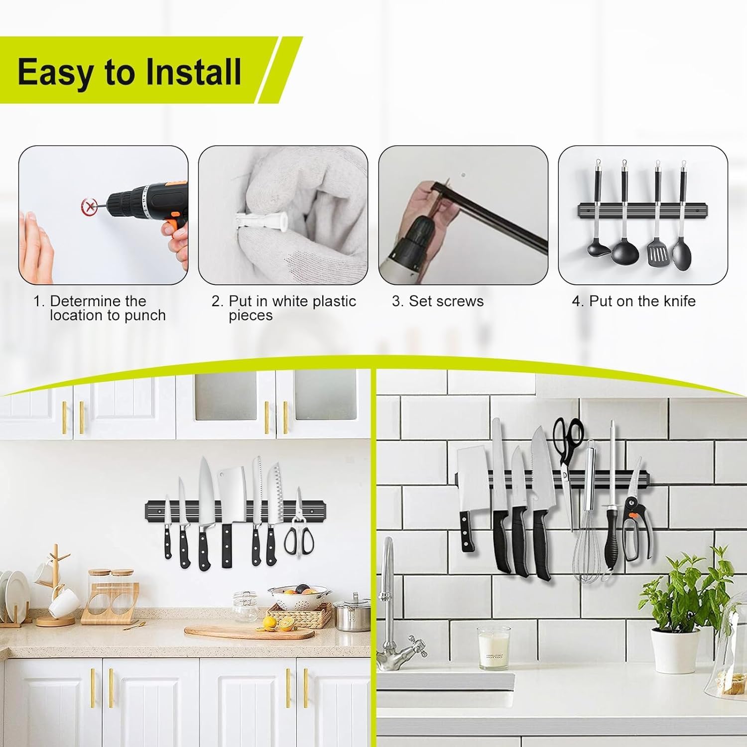 VERSATILE STORAGE: Suitable for various metal kitchen tools including knives, scissors, utensils, and other magnetic kitchen implements