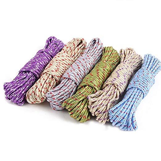 trong Nylon Braided Cotton Rope | Clothesline for Drying Clothes | 20 Meter Length | 5mm Thickness (Diameter) | Assorted Colour | Pack of 1