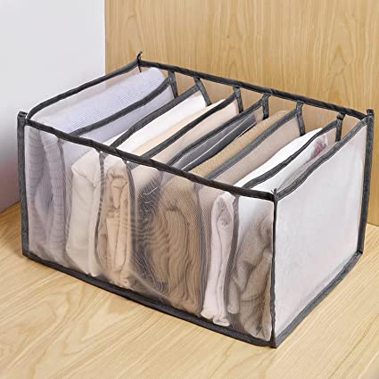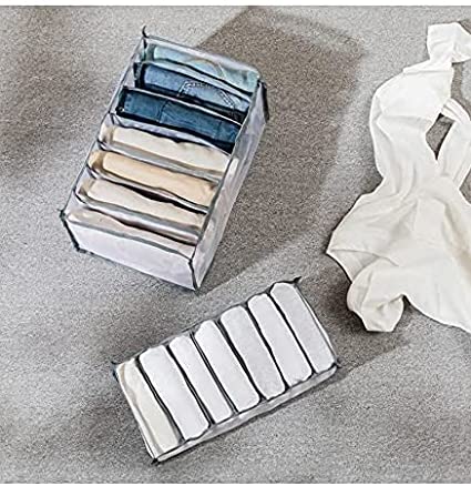 Wardrobe Clothes Organizers, 7 Grids Jeans Compartment Storage Box for Baby Clothes, Underwear, Jeans, T-Shirts