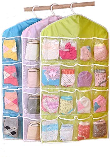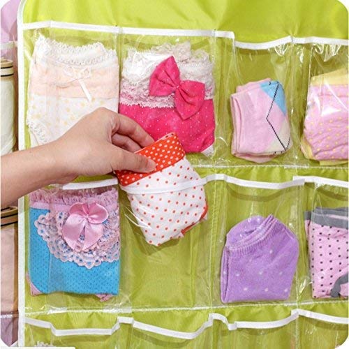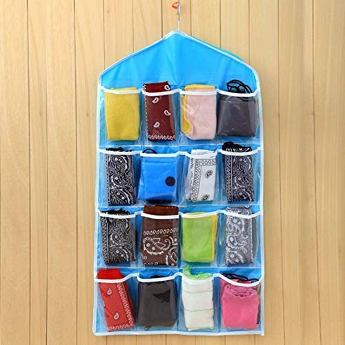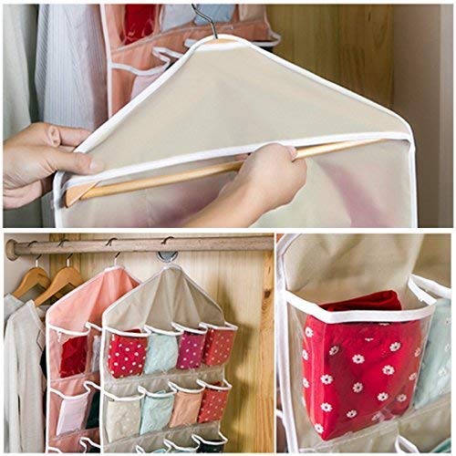 16 Pockets Clear Hanging Wall Pocket Bag for Socks Bra Underwear Cupboard Rack Hanger Storage Organiser( 1 Pcs, Colour May Vary )