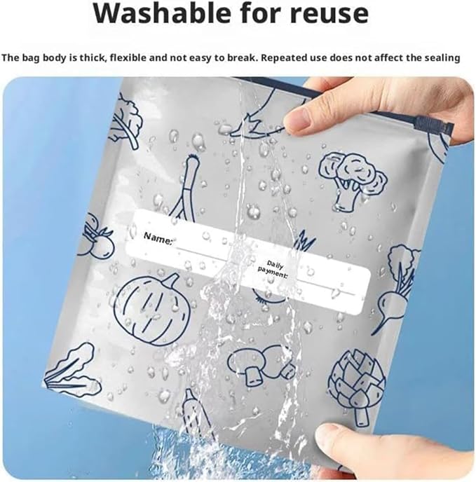 【Washable and Reusable】 Made with convenience in mind, these reusable aluminum foil sealable storage bags are washable and can be reused multiple times.They are recyclable when clean and dry.Suitable for storing a variety of foods, including fruits, vegetables, meats, and more.