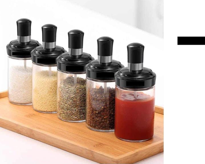 The seasoning pot is made of high-quality food-grade glass. The transparent glass container allows you to clearly see the spices and their capacity; the capacity of each seasoning pot is 250 ML