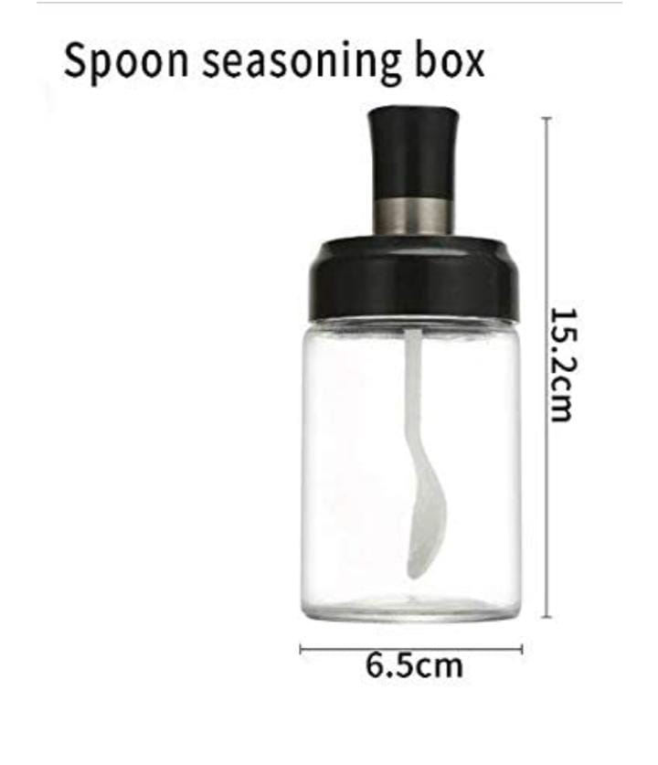 BLACK JARExotic Mall Kitchen High Borosilicate Glass Food and Pickle Storage Spice Jar With Spoon Storage Spice Salt Sugar Storage Bottle Glass Container Jar 250ml 1-(Spoon Jar) (SPOON, 1)